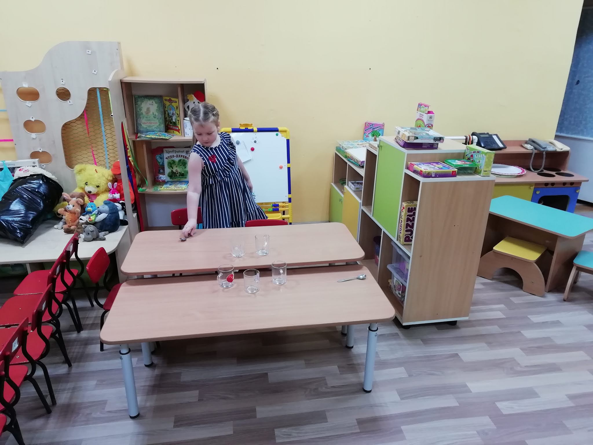 В течение дня ребята оказывали помощь младшему воспитателю: сервировали столы, старались быть аккуратными и поддерживали чистоту группового помещения.Помогали воспитателю в подготовке к занятию.